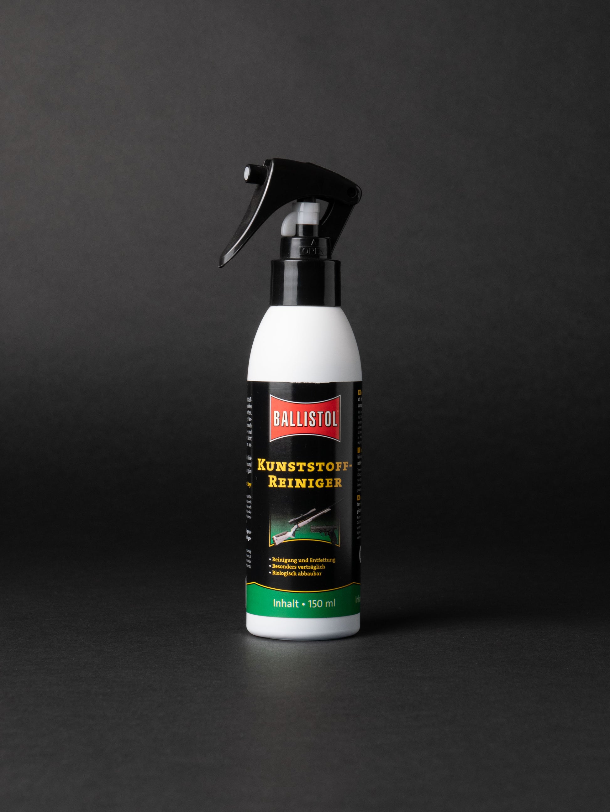 Uzun silahların ve tabancaların tüm plastik silah parçaları, silah kılıfları ve çantaları Ballistol Plastik Temizleyici ile hızlı ve etkili bir şekilde temizlenebilir.
